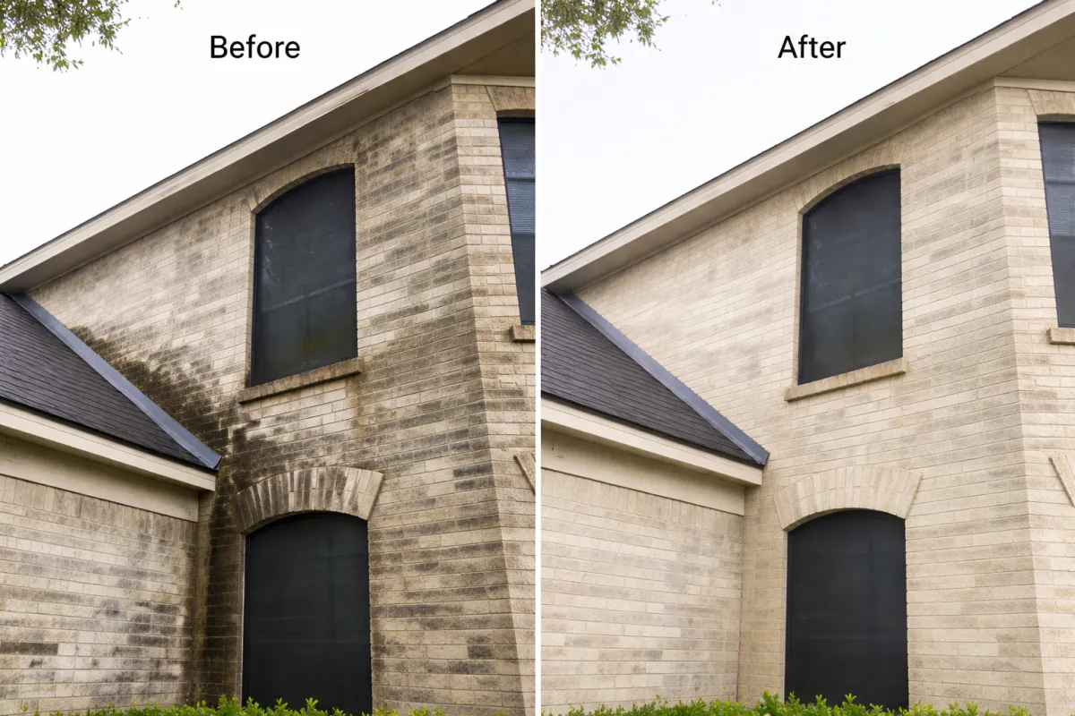 At Master's Touch, we use a professional soft washing process designed to break down organic build up at the source - restoring your home safely without the risks of high-pressure cleaning.